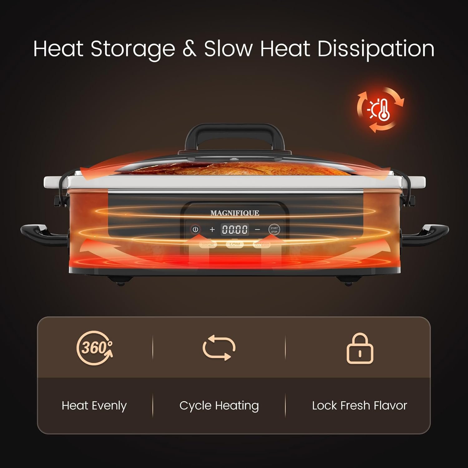 This slow cooker features a high-quality ceramic baking dish that is oven-safe, dishwasher-friendly, and built to last. The removable dish makes transferring food from the cooker to the table simple, while easy cleanup ensures minimal effort after cooking. Unlike plastic or metal alternatives, the ceramic material provides even heat distribution and preserves the flavors of your meals.