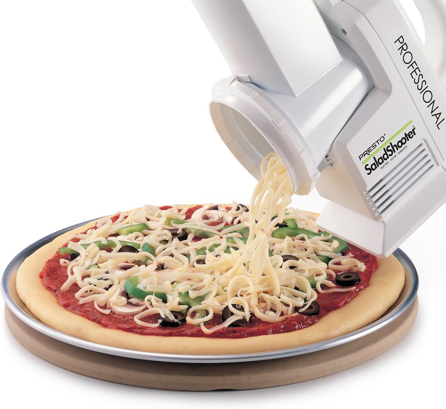 The Presto 02970 Professional SaladShooter makes slicing and shredding effortless with its powerful motor and interchangeable cones. Designed to handle everything from cheese and veggies to nuts and chocolates, it delivers fresh results straight into your bowl or pan. With dishwasher-safe parts and a compact build, it’s a must-have for quick, mess-free meal prep — upgrade your kitchen routine today.