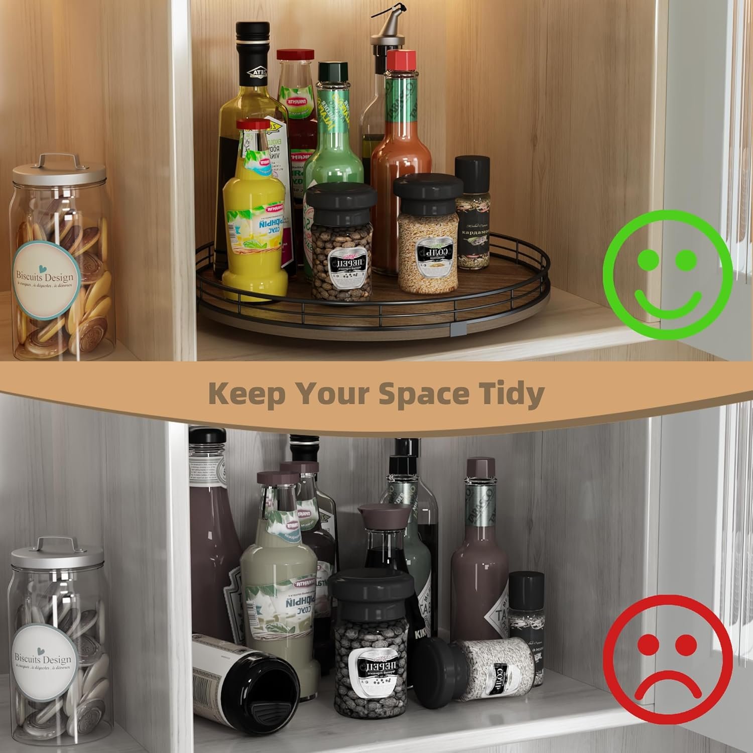 Transform your kitchen, dining area, or pantry with the 13-nich rotating table organizer. Combining durability, style, and smooth rotation, this organizer helps you keep your essentials neatly arranged and easily accessible. Say goodbye to cluttered countertops and crowded cabinets, and welcome a more efficient, elegant, and organized home.