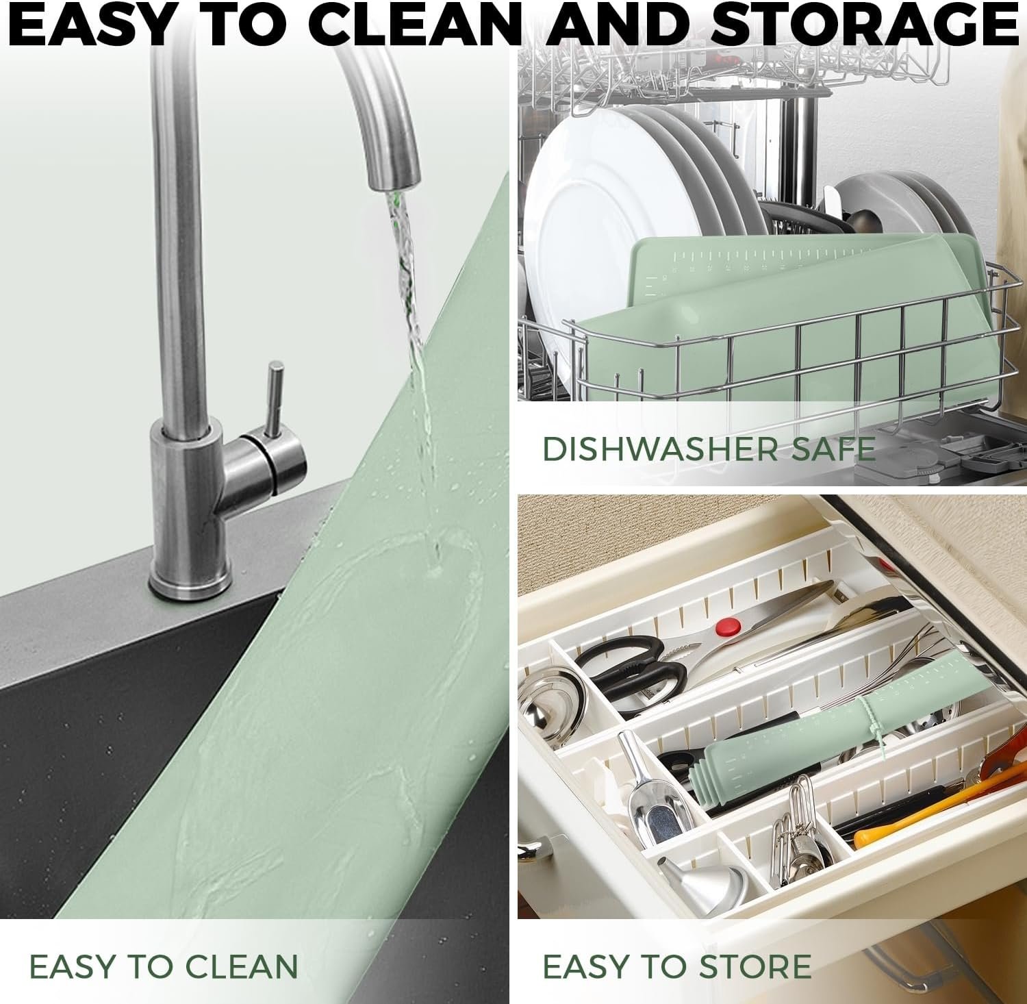 - Foldable or Rollable: Easy storage in any kitchen drawer